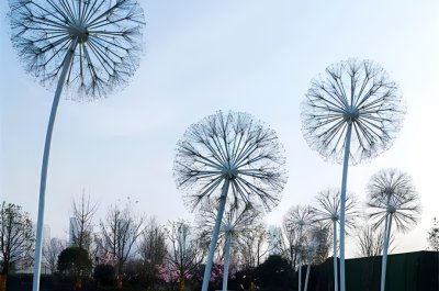 广场公园中的不锈钢植物景观蒲公英雕塑,以其逼真的形态和不锈钢的耐用性,为公共空间带来了一份自然之美。